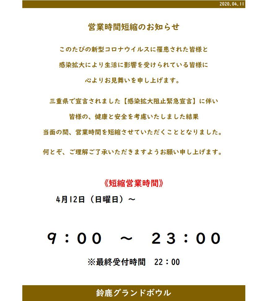 ボウリング料金変更のお知らせ 鈴鹿グランドボウル